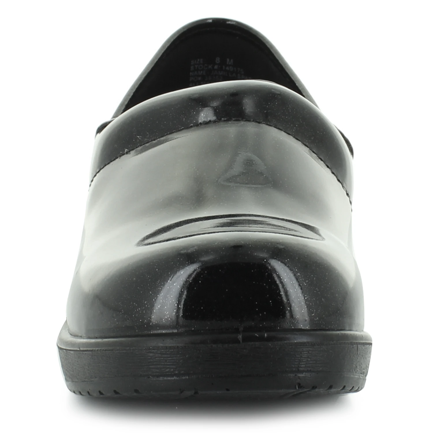 Slip into ultimate comfort with this work shoe by Air Flex. The Air Flex Jamilla Spark features a slip-on style with with a comfort insole while you on your feet all day. The glitter detail will provide additional style with each and every step.