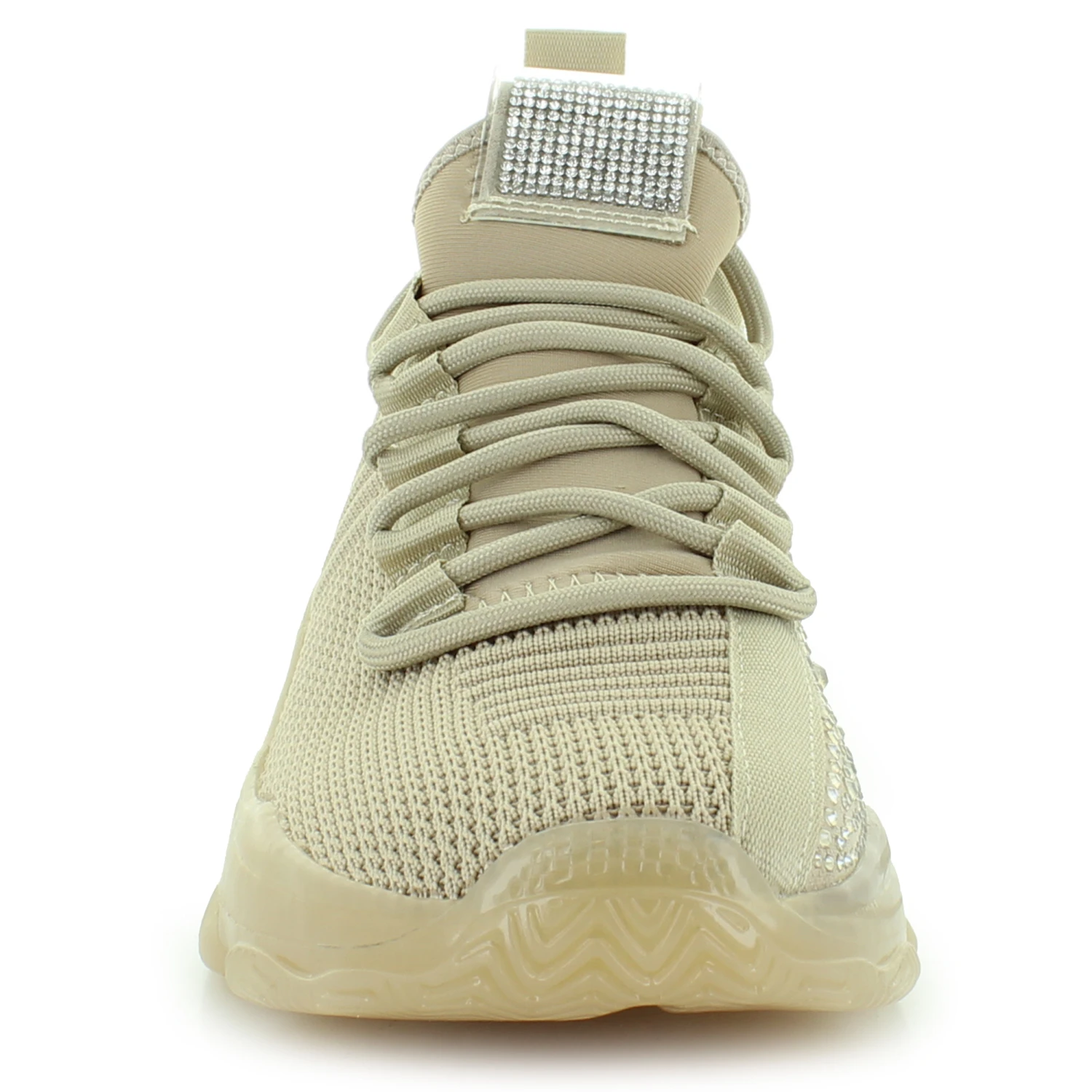 Sleek and stylish sneaker by Air Underground. This style features texture-blocked knit upper with glitzy rhinestone embellishments on the tongue and side. The lace-up front provides the perfect fit.