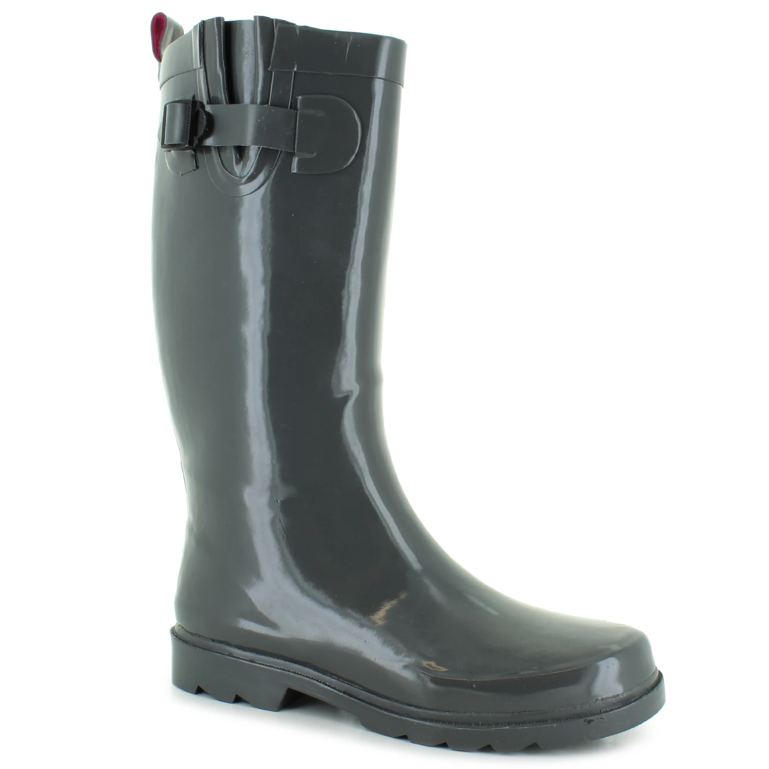 Stay warm and dry on those rainy days. This rain boot features a slip-on wear with a side buckle closure. The flexible rubber outsole will provide support and comfort.
