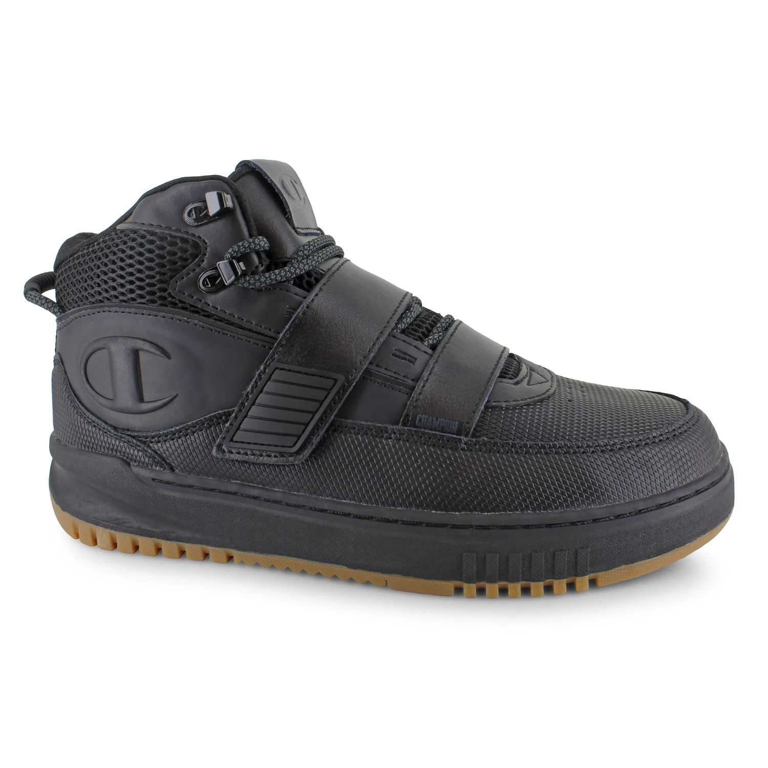 Gear up this season with the Champion Fifty94 Ridge for unparalleled style and design. Crafted with a mixture of textures and retro-inspired design, this hi-top sneaker features an adjustable velcro strap as well as a lace-up front closure for a snug fit, while a padded collar and tongue offer additional support. A plush and contrasting midsole provides enhanced support through every stride while a durable gum-rubber outsole ensures reliable traction on multiple surfaces.