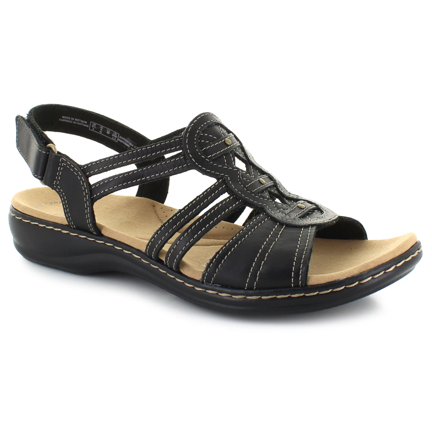 Start the summer off right with the Clarks Leisa Janna sandal. This style features a leather upper with a side strap at the ankle for a comfy fit. The comfort insole will provide all day wear.