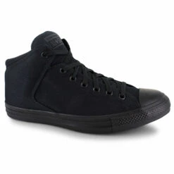 Lace up and hit the streets with the classic Converse Chuck Taylor All Star Street Hi sneaker. This mid-top features a secure lace-up front closure, padded tongue, and collar, as well as a durable upper crafted from canvas. This iconic Converse toecap paired with the All Star branding on the side, this shoe pairs well with the most casual and athletic attire.