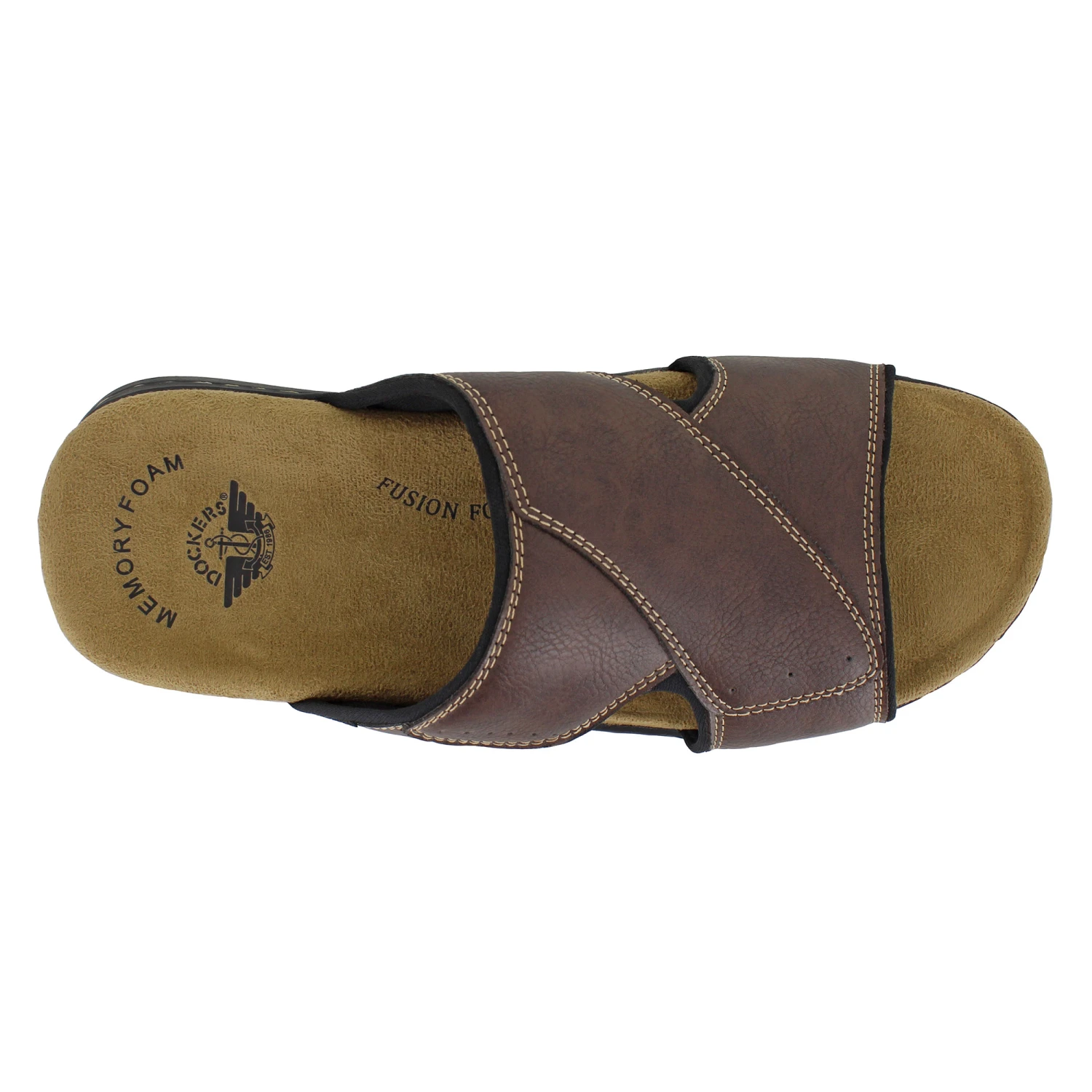 Dress up your warm-weather season with the Dockers Seaton. This slide-styled sandal features a handsome and durable synthetic leather upper with a comfortable lining and open sides to keep your feet refreshed even on the hottest days. The memory foam-cushioned footbed provides long-lasting comfort that’s ready for exploration, while a rubber traction outsole keeps every step confident and steady.