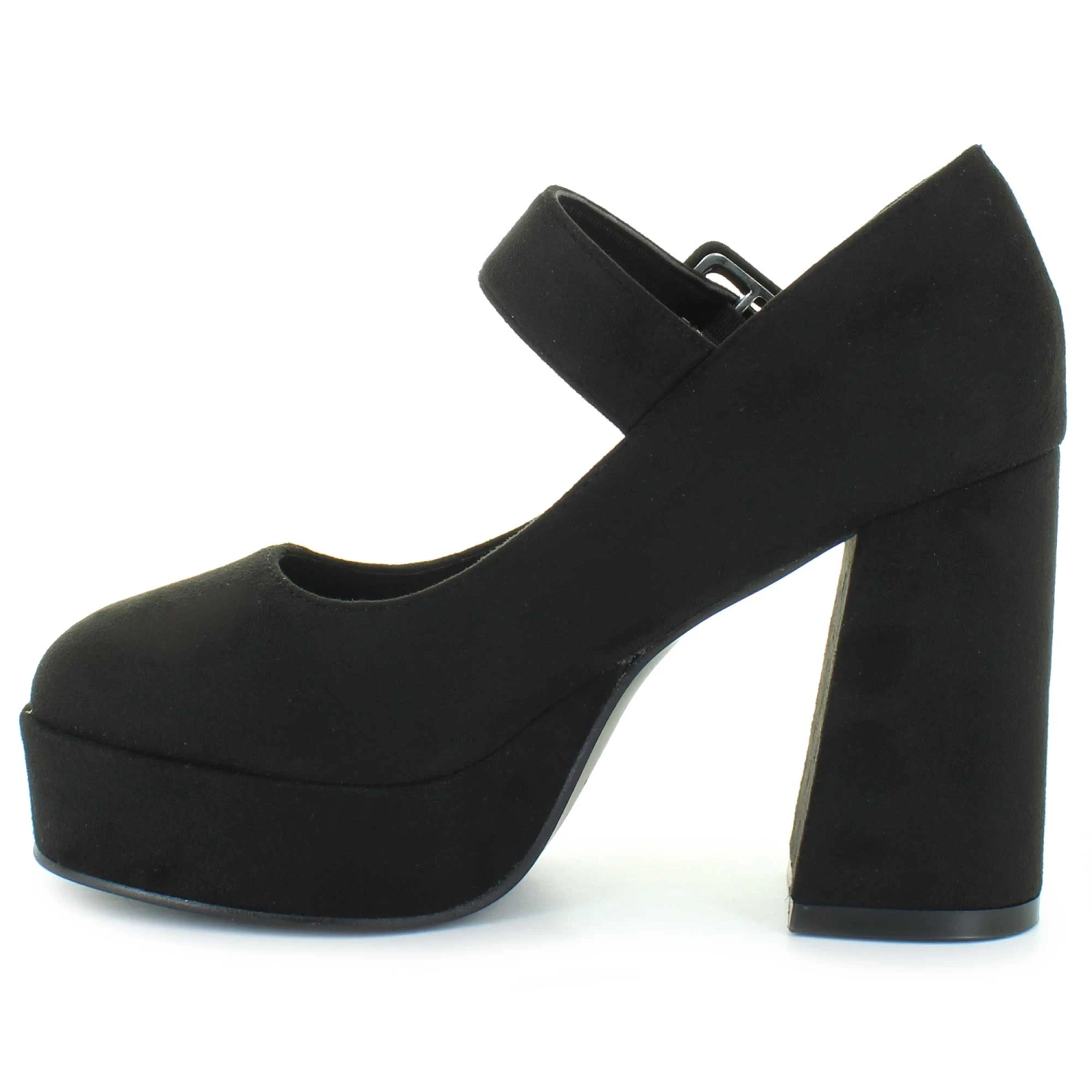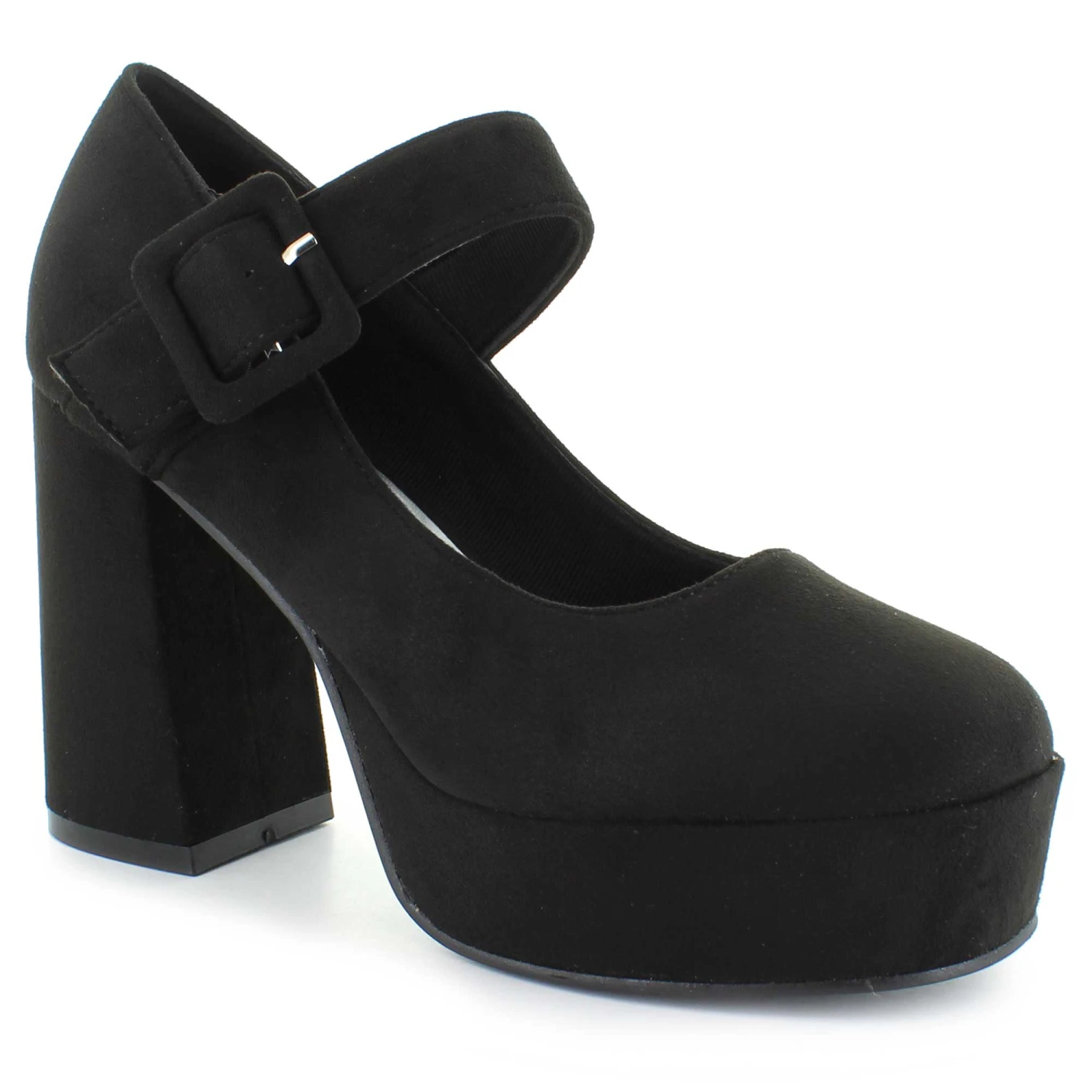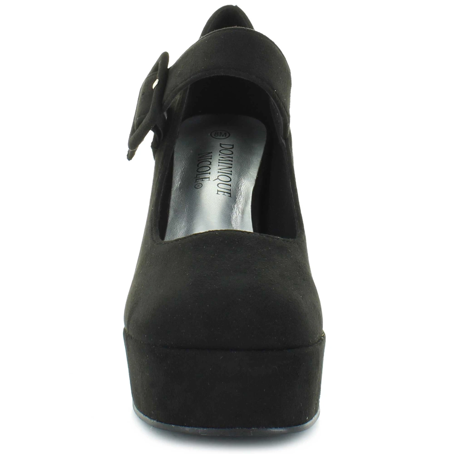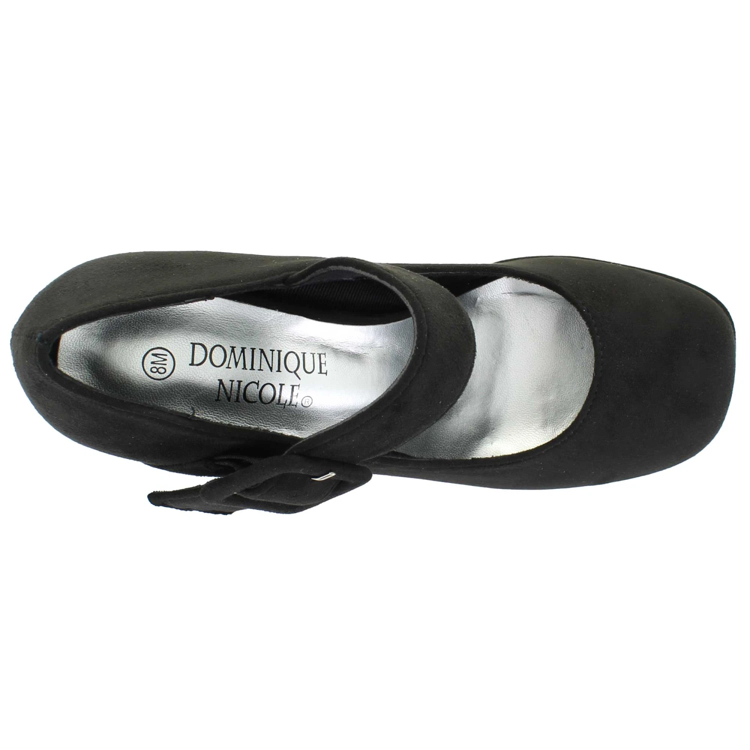Sleek and fashionable Dominique Nicole Violet dress shoe. This style features a slip-on wear with a side buckle closure for just the right fit. The platform heel will provide the perfect height.