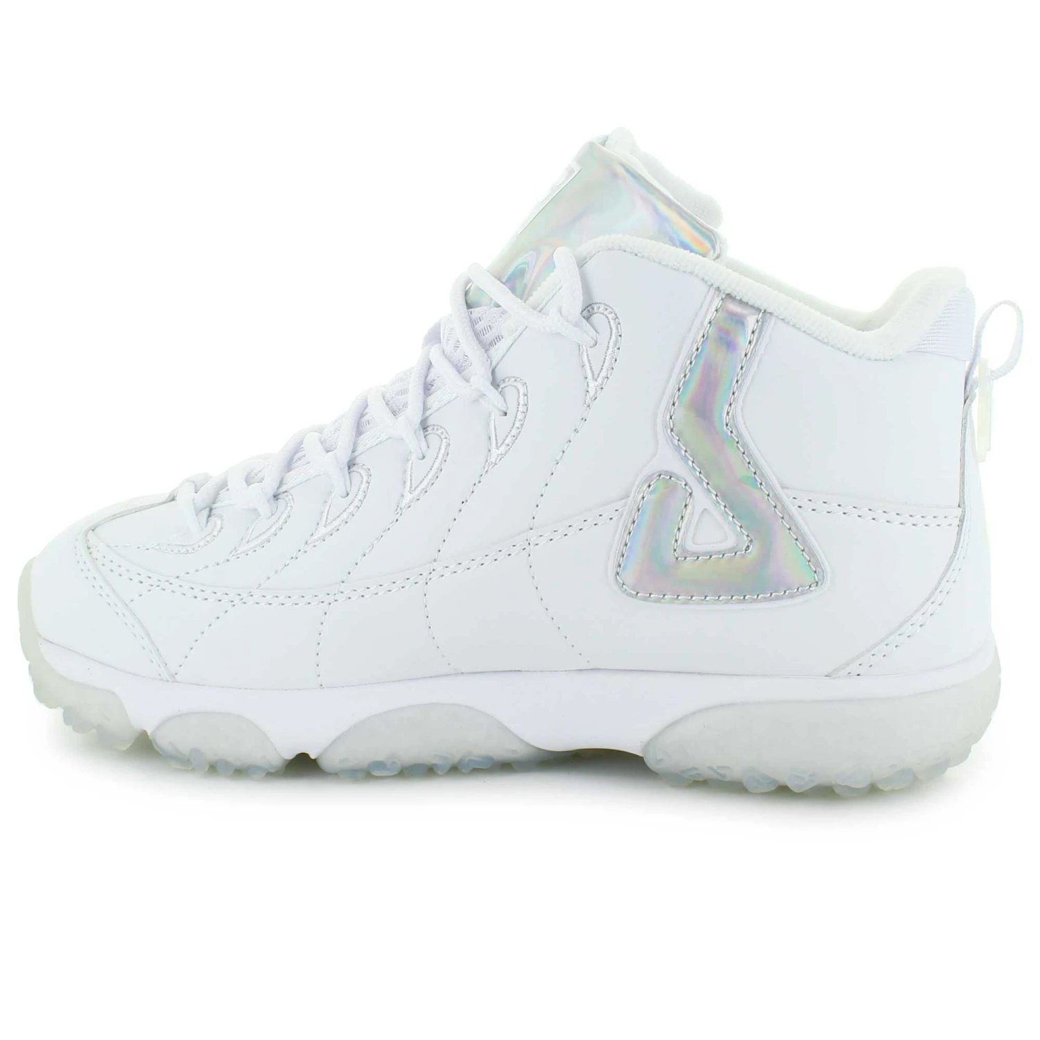 Lace-up with the Fila Snake Dancer. This basketball shoe gets its look from the early 2000s, featuring a smooth synthetic upper, cushioned insole, and a patterned rubber outsole. With side stitching on the upper for added style and the stitched Fila logo on the quarter, this shoe will keep you looking fresh in any athletic attire.