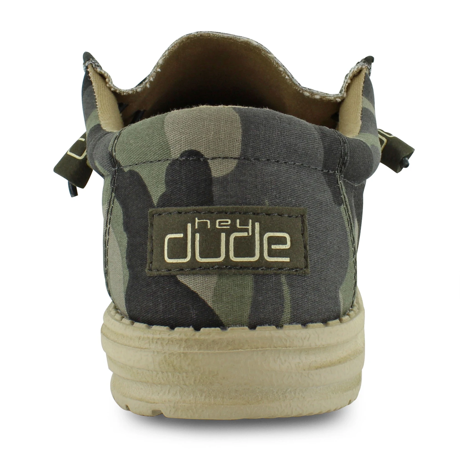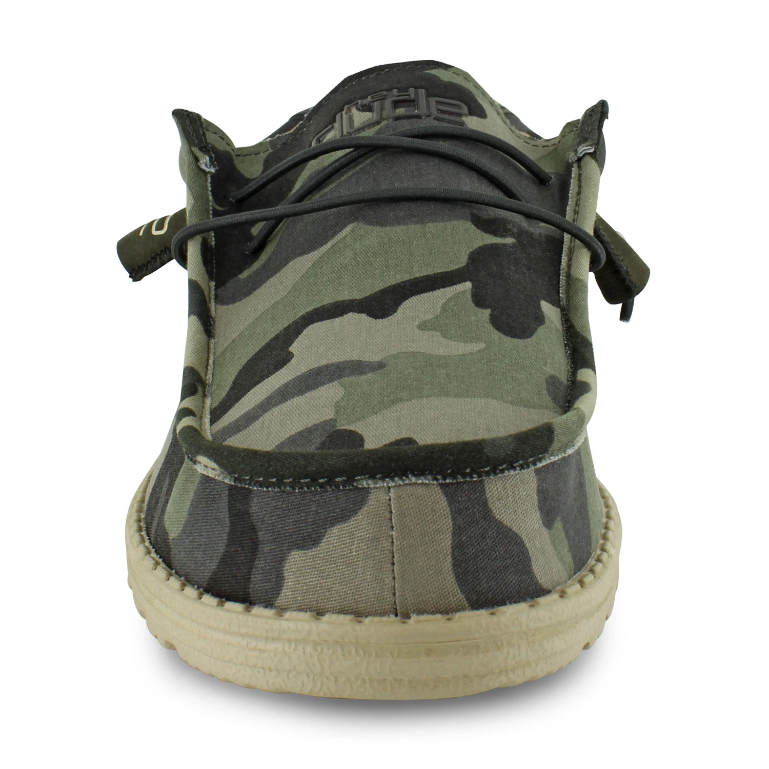 The Hey Dude Wally Canvas Camo is lightweight and crafted for year-round wear. Built for versatile comfort and style, this moc-toe slip-on is crafted with a durable canvas upper. Featuring elastic bungee laces that allow for an easier on and off, making this shoe the perfect on-the-go casual shoe. With a padded collar and a soft fabric lining as well as a memory foam insole for extra support, the Wally caters to any and all lifestyles and occasions with cool casual comfort.