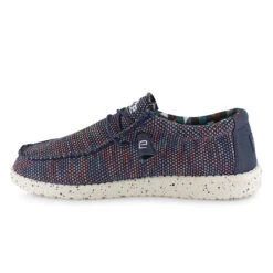 The Hey Dude Wally Serape is lightweight and crafted for year-round wear. Built for long-lasting comfort and style, this moc-toe slip-on is crafted with a breathable knitted cotton fabric upper that conforms to the shape of your foot for a snug fit. Featuring handsome Serape patterning and elastic bungee laces that allow for an easier on and off making this shoe the perfect on-the-go casual shoe. With a padded collar and a soft patterned cloth lining for added style as well as a memory foam insole for extra support, the Wally caters to any and all lifestyles and occasions with cool casual comfort.