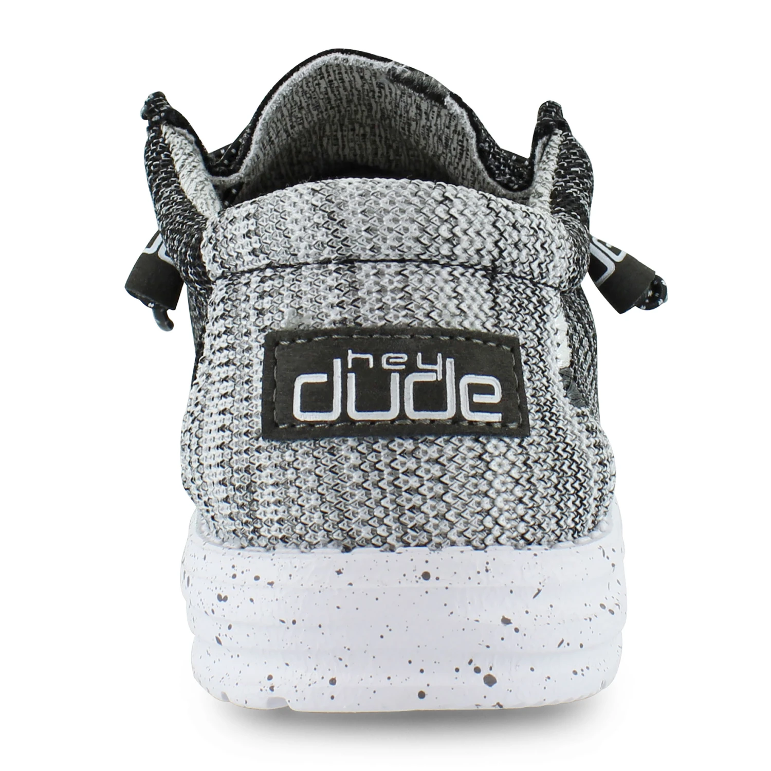 The Hey Dude Wally Stretch is lightweight and crafted for year-round wear. Built for versatile comfort and style, this moc-toe slip-on is crafted with a knitted stretch fabric upper that conforms to the shape of your foot for a snug fit. Featuring elastic bungee laces that allow for an easier on and off making this shoe the perfect on-the-go casual shoe. With a padded collar and a soft patterned cloth lining for added style as well as a memory foam insole for extra support, the Wally Stretch caters to any and all lifestyles and occasions with cool casual comfort.
