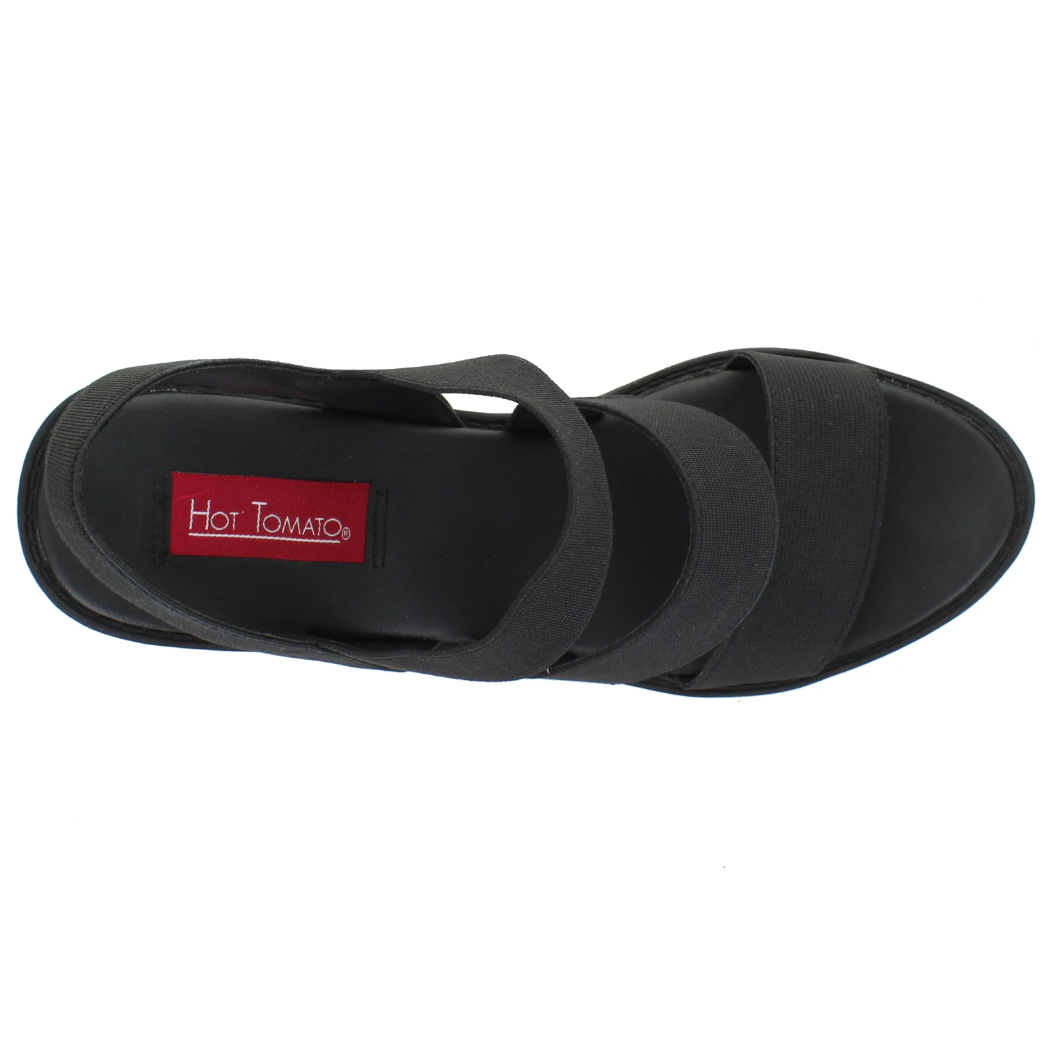 Upgrade your shoe collection with the Hot Tomato Jessie. This style features a slip-on wear with stretch elastic straps for a snug and comfy fit. The traction outsole will provide grip and support while the block heel will provide the perfect height.