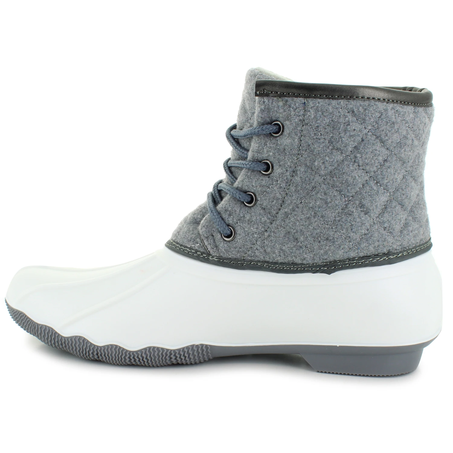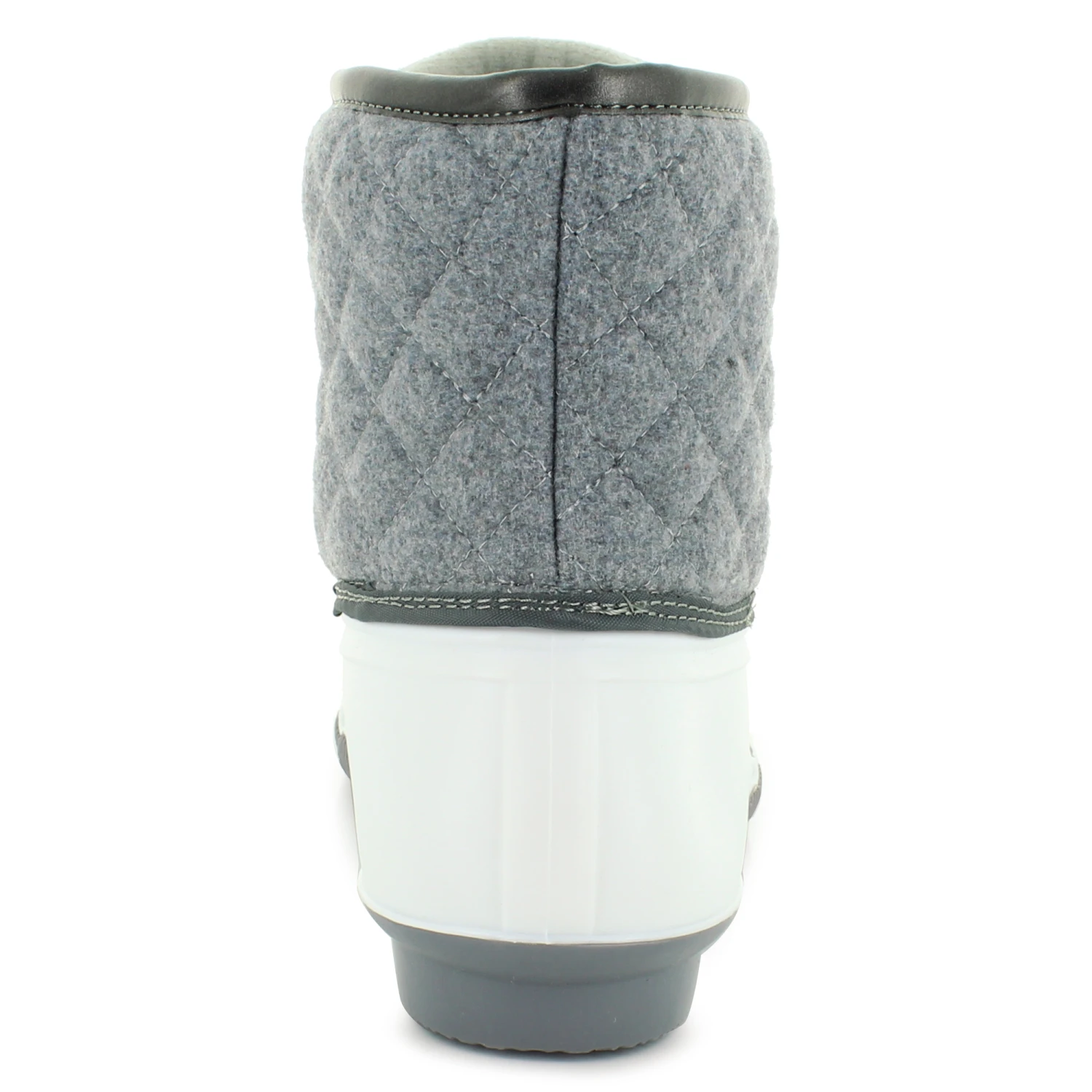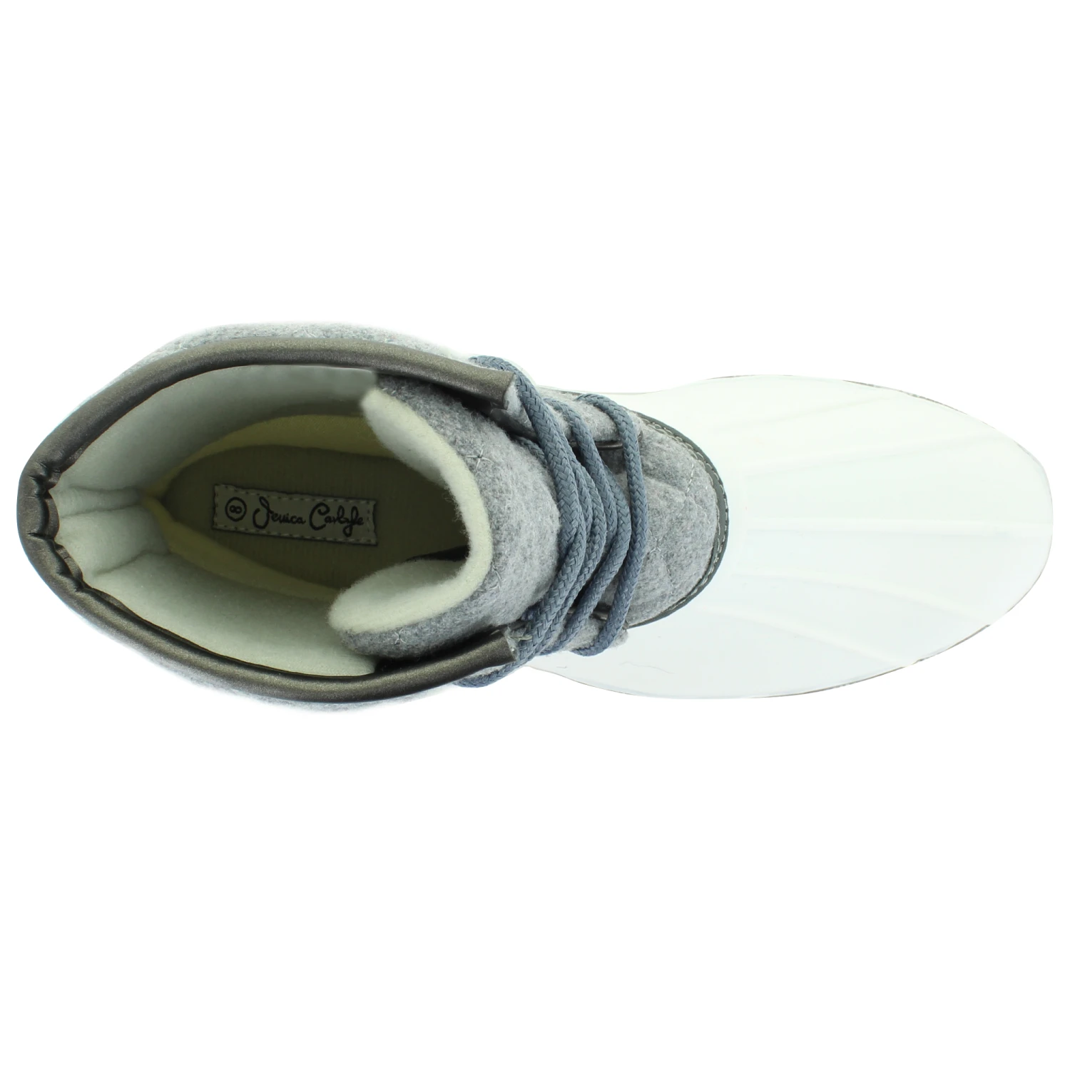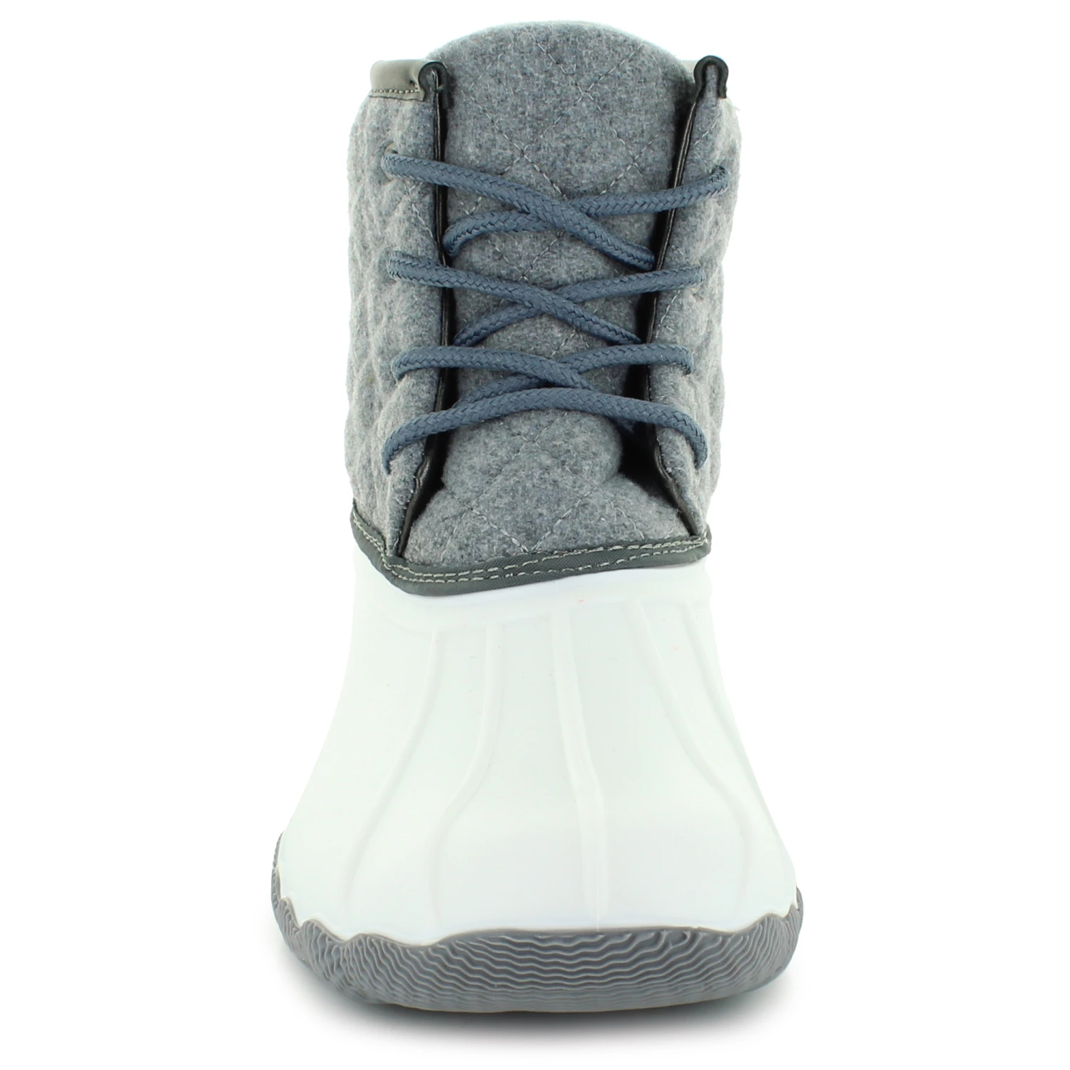 Stylish and comfortable duck boot by Jessica Carlyle. This boot features a lace-up front with quilted stitching accents for styling. The comfort insole will provide all day wear.