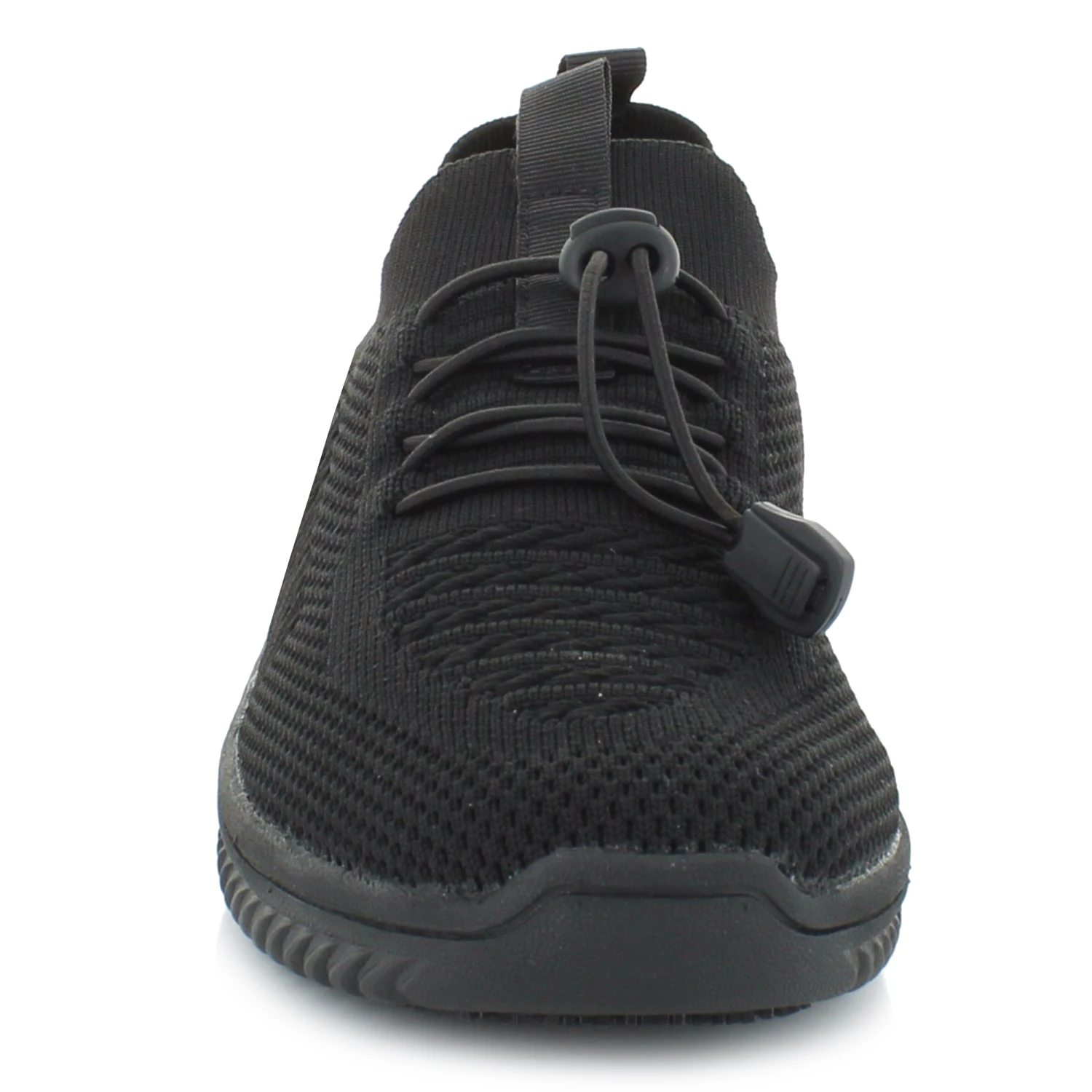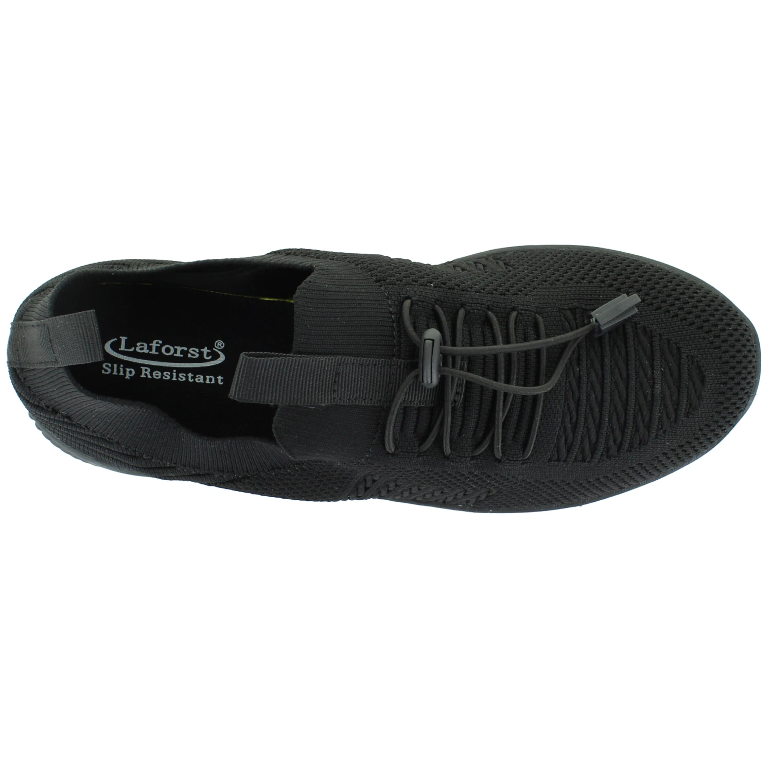 Classic comfortable work shoe by Laforst. This style features a knit fabric upper with bungee laces for a comfy fit. The Slip-Resistant will provide a firm grip on any surface.