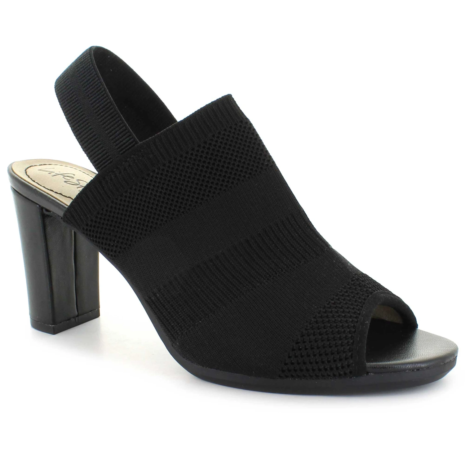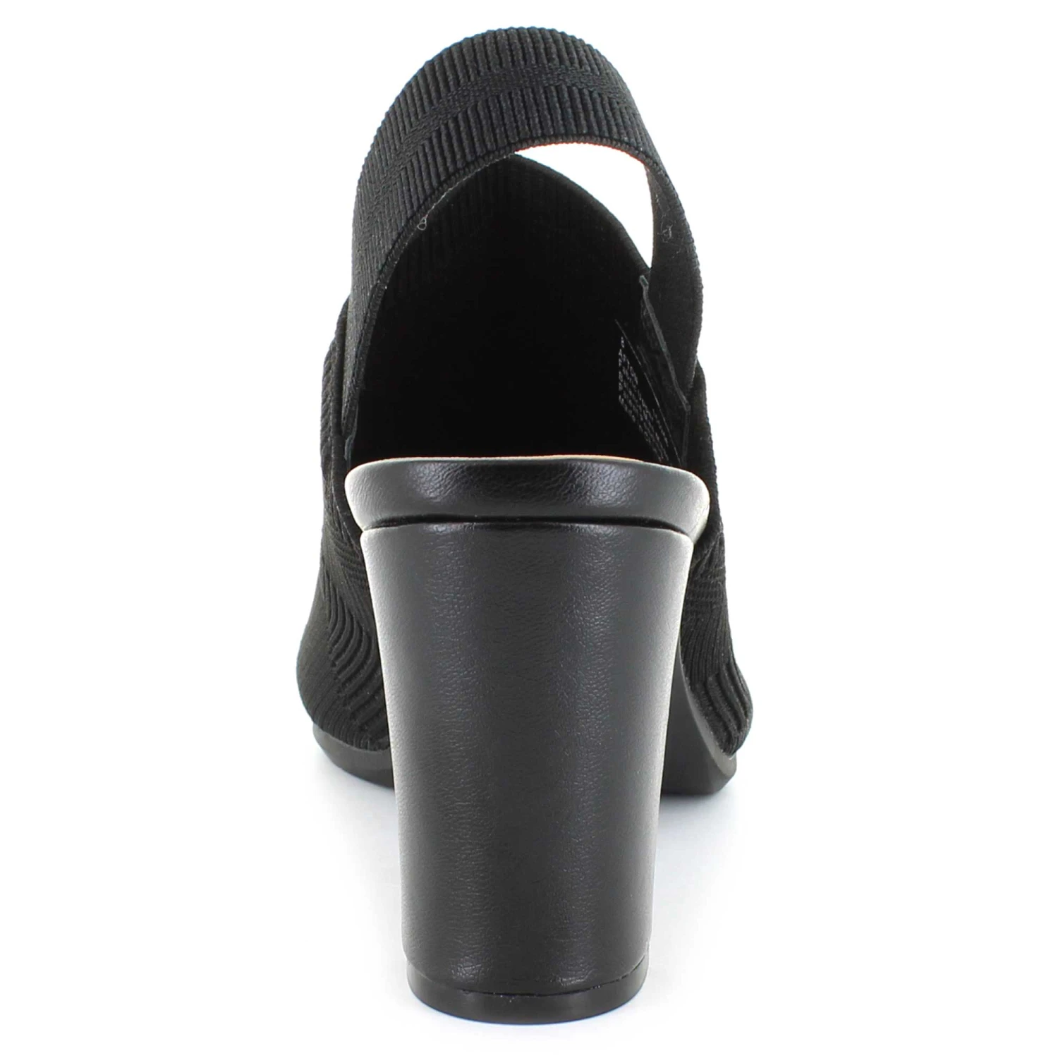 Stretchy and sophisticated, this modern peep-toe heel is the perfect fit for any look. Stretch knit upper with a peep-toe and heel slingback strap.
