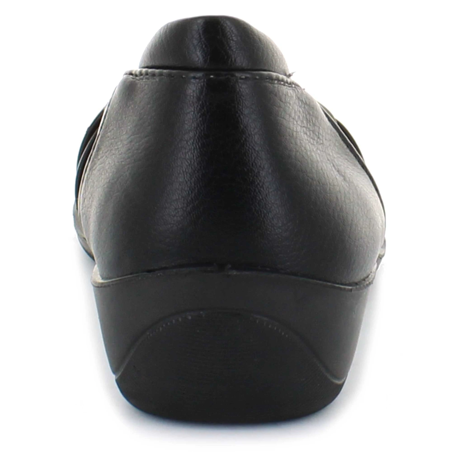 Feel like you’re walking on air in this lightweight, must-have wedge. Faux-leather upper with a round-toe, slip-on fit, padded heel collar, ultra-lightweight construction, and exceptional flexibility.