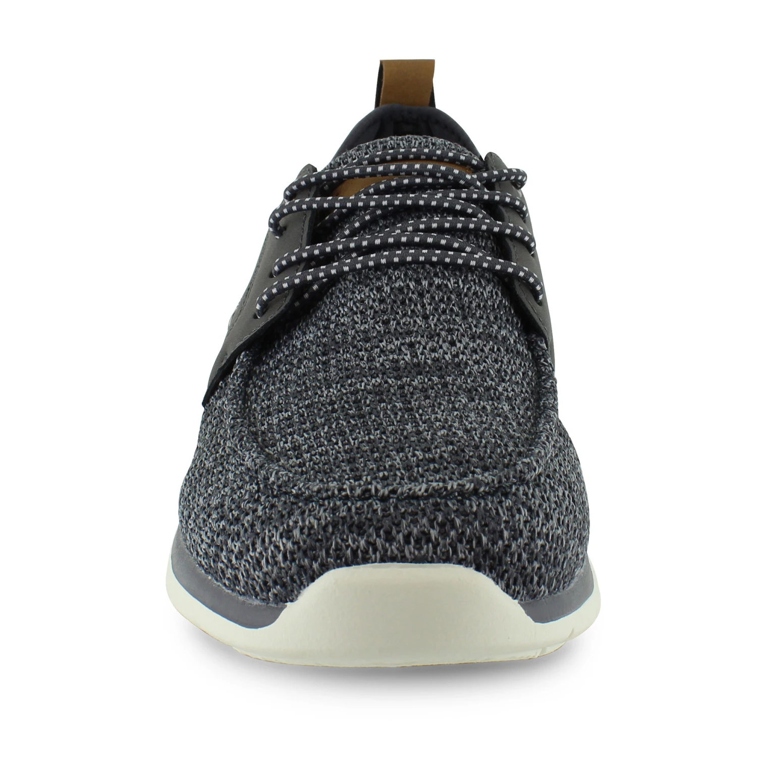 Keep your warm weather season light and casual with the London Underground Ray. This handsome moc-toe is crafted with a breathable knitted fabric upper that’ll keep your feet feeling fresh when warm weather hits. The 360 elastic bungee lacing system provides an adjustable yet snug fit while a heel pull-tab allows for an easier on and off. The footbed is contoured and cushioned to provide lasting comfort and support where you need it most. With a lightweight traction outsole rounding off the design, this slip-on is sure to keep you coming back for more.