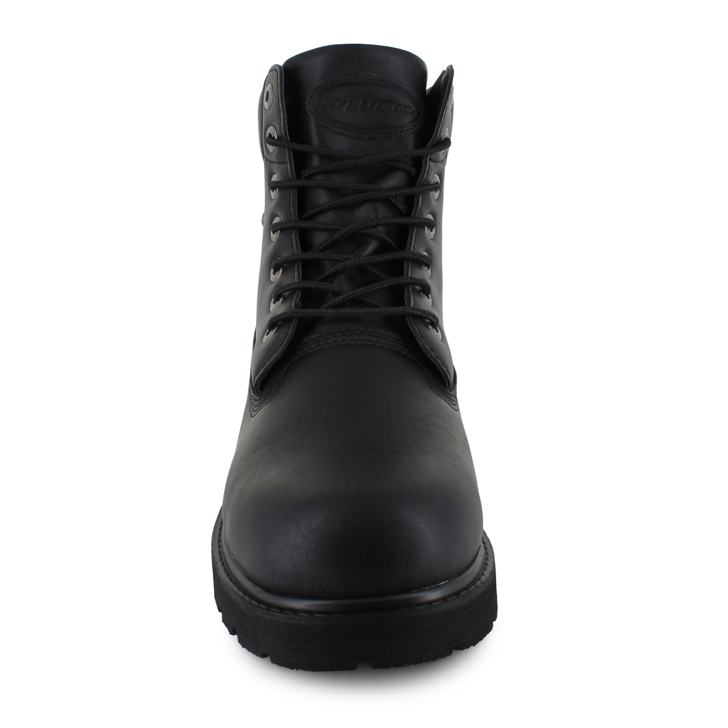 The Lugz Drifter 6″ has all the charm of a classic ankle boot with an added layer of workplace protection that’s ready for action. This steel-toe safety boot is crafted with a water-resistant durable synthetic leather upper to create a practical yet handsome design. The lace-up front closure secures your foot in place while a padded tongue and collar offer extra support through the ankle. A breathable mesh lining pairs with a Flexastride Memory Foam insole that provides comfort and support throughout the workday while the durable lugged rubber outsole provides superior traction and oil and slip-resistance.