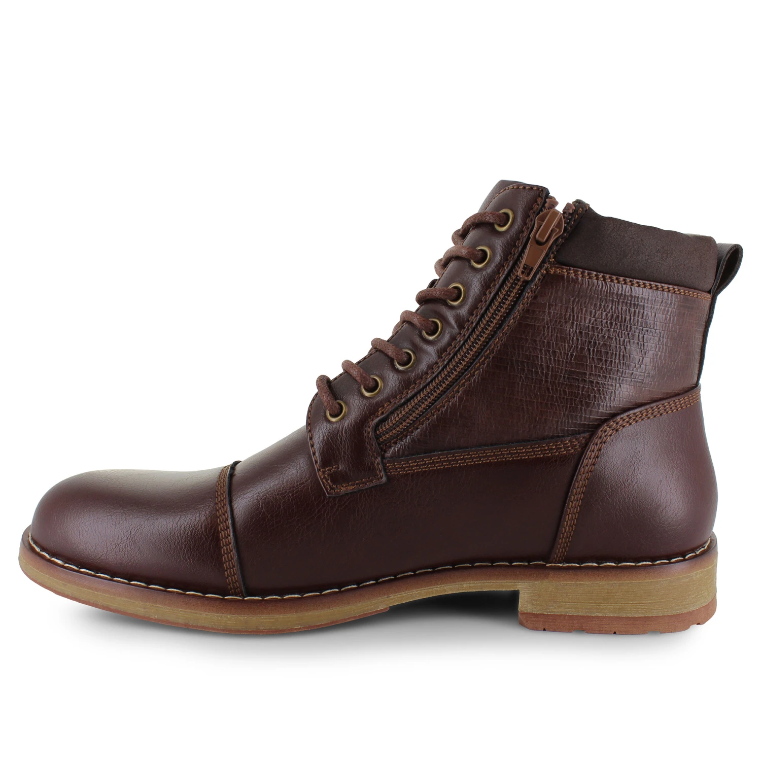 Get laced up in fresh fall fashion with the Oliver Mason Liam. This ankle boot features a smooth synthetic upper with contrasting quarters for added style. The lace-up front closure combined with dual zippers will keep your feet locked in place and ready for anything. A lightly padded collar and tongue offer additional ankle support while a cushioned insole will keep you moving throughout the day.