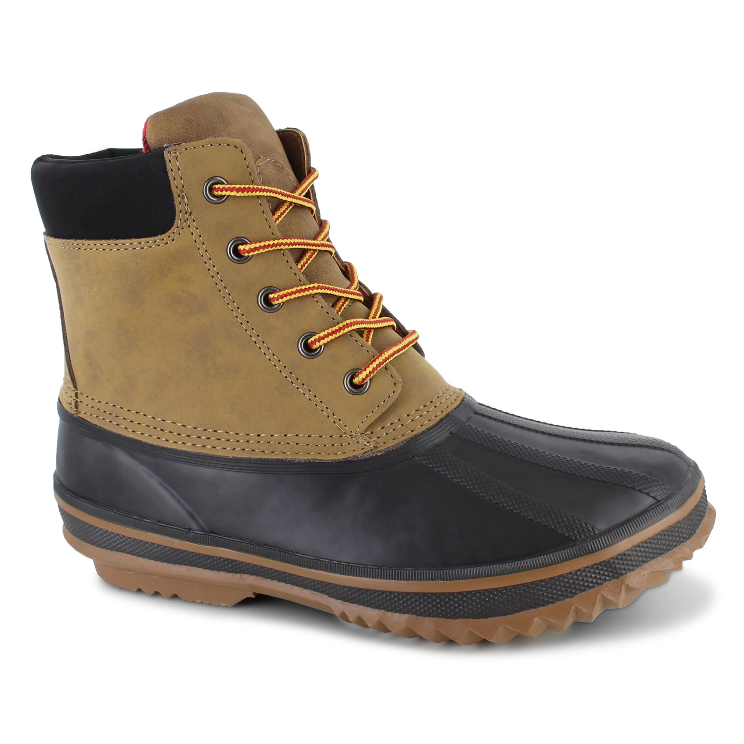 Rain or shine, the Outbound Trading Co. Josh is ready for anything. Crafted with a smooth synthetic action leather upper that features a waterproof rubber shell bottom to keep your feet dry. The lace-up front closure combined with a padded collar and tongue locks your foot in place and provides additional ankle support. A lightly cushioned insole will keep a bounce in your step while the thick lugged rubber traction outsole keeps you steady on your feet.