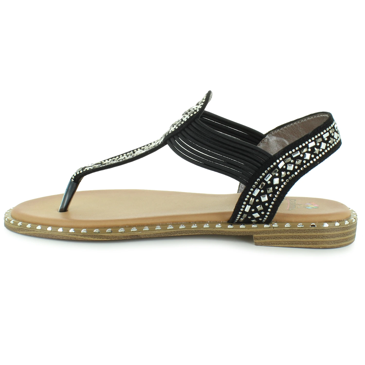 Slip into this cute and comfy sandal by Palms. The Palms Delia Stretch features a slip-on wear with stretch bungee straps for a snug and comfy fit. The rhinestone upper will provide sparkle with each and every step.
