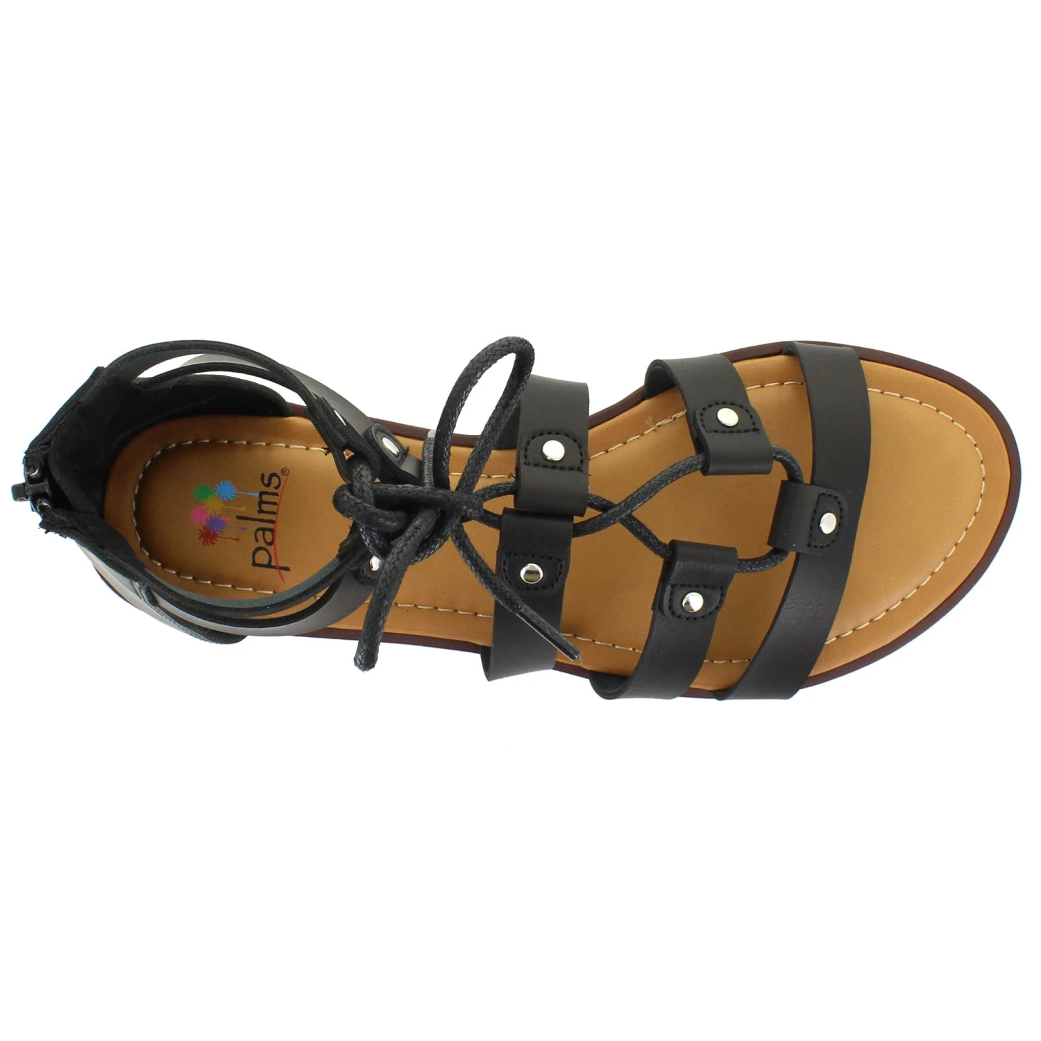 Lace up and step into this fashionable gladiator sandal by Palms. This style features a lace-up front with a gladiator construction. The back zipper closure will provide an easy on and off.