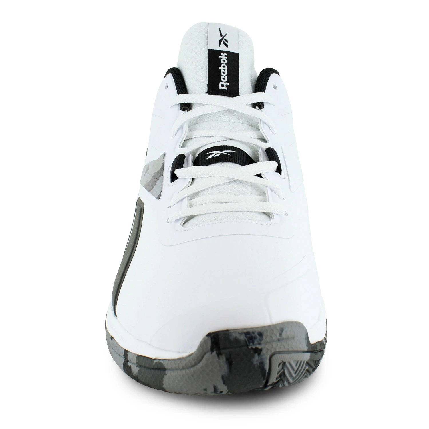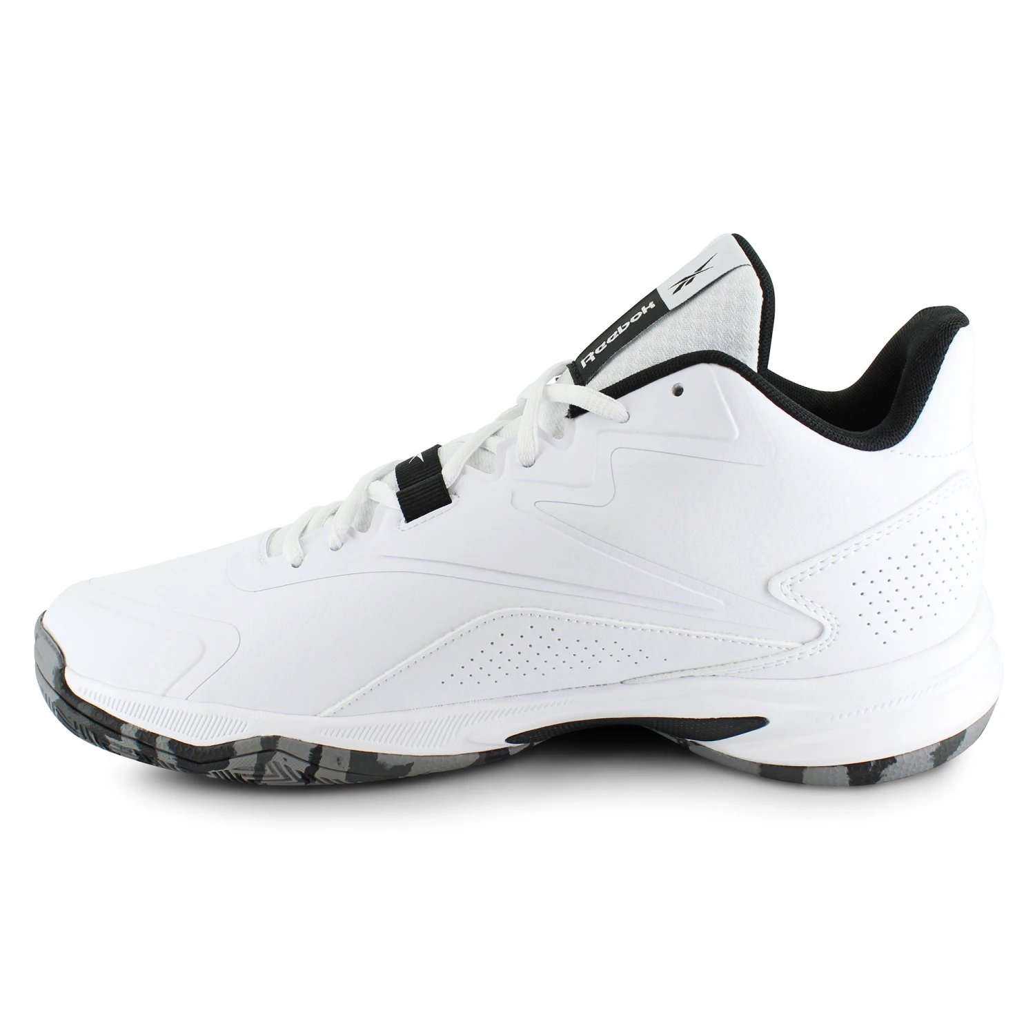 Hit the courts in a sneaker meant for players with the Reebok More Buckets. This mid-top basketball shoe is constructed with a durable synthetic leather upper that keeps you ready for action even under the pressure of a game. Synthetic overlays provide support throughout the upper while also adding a bit of flair with a bold Reebok vector logo and camouflage details. The lace-up front closure keeps your foot locked in place and ready for action while an OrthoLite cushioned insole and durable rubber outsole keep it comfortable and on track.