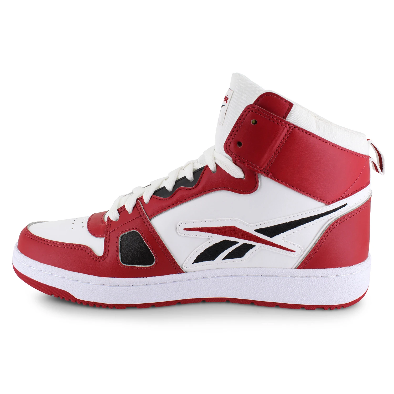 Rebound back into the game when you lace up with the Reebok Resonator Mid. Crafted with a sturdy leather upper and a retro-inspired basketball design, this sneaker is ready to perfect your performance on the courts. The padded collar and tongue offer additional ankle support while a lightweight foam cushioned insole provides long-lasting comfort. Bold contrasting panels and stitched Reebok branding add a little flair to the design as this shoe is bound to keep you winning games with a durable rubber cupsole construction giving you a boost.