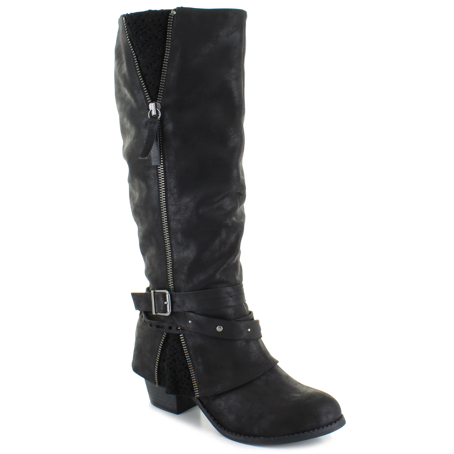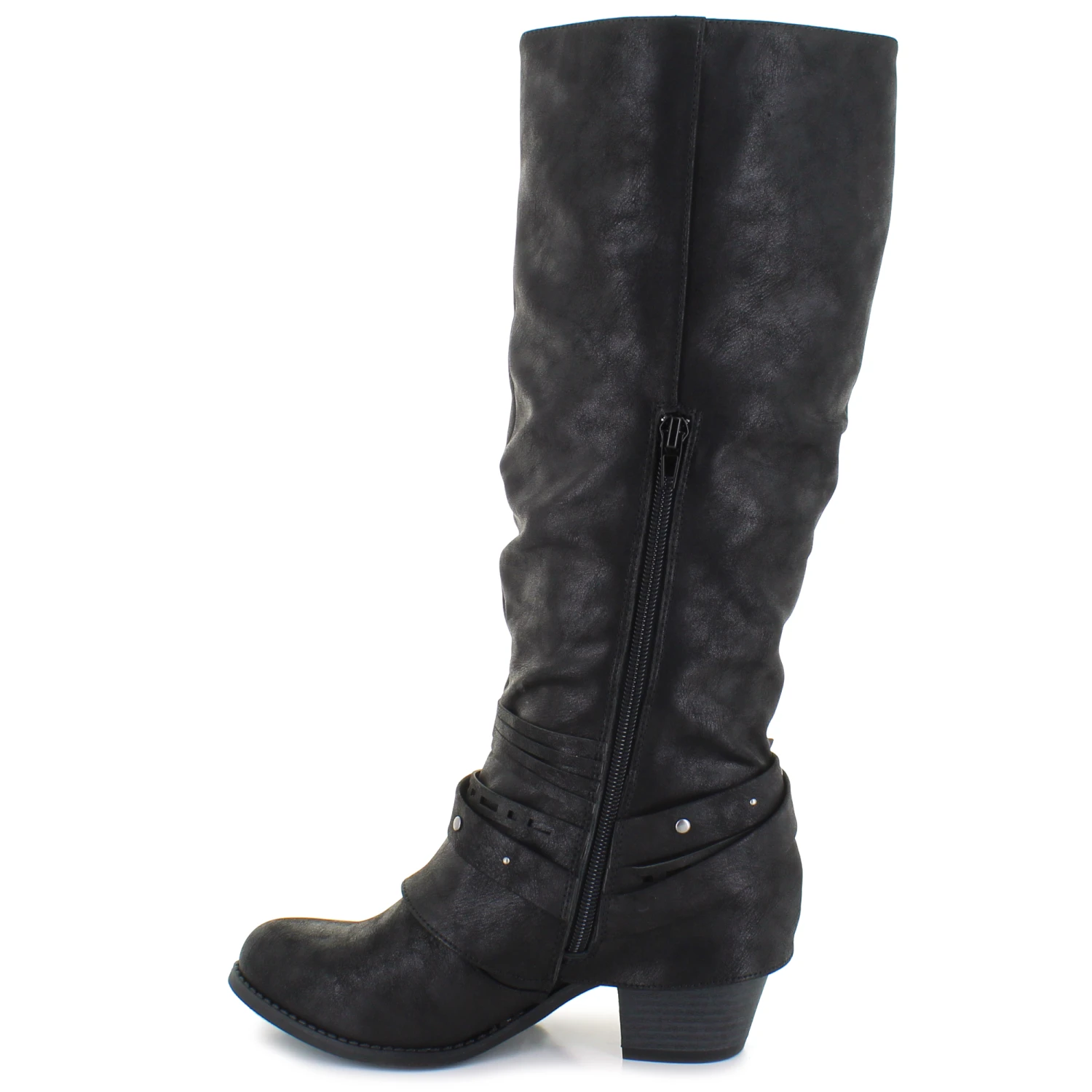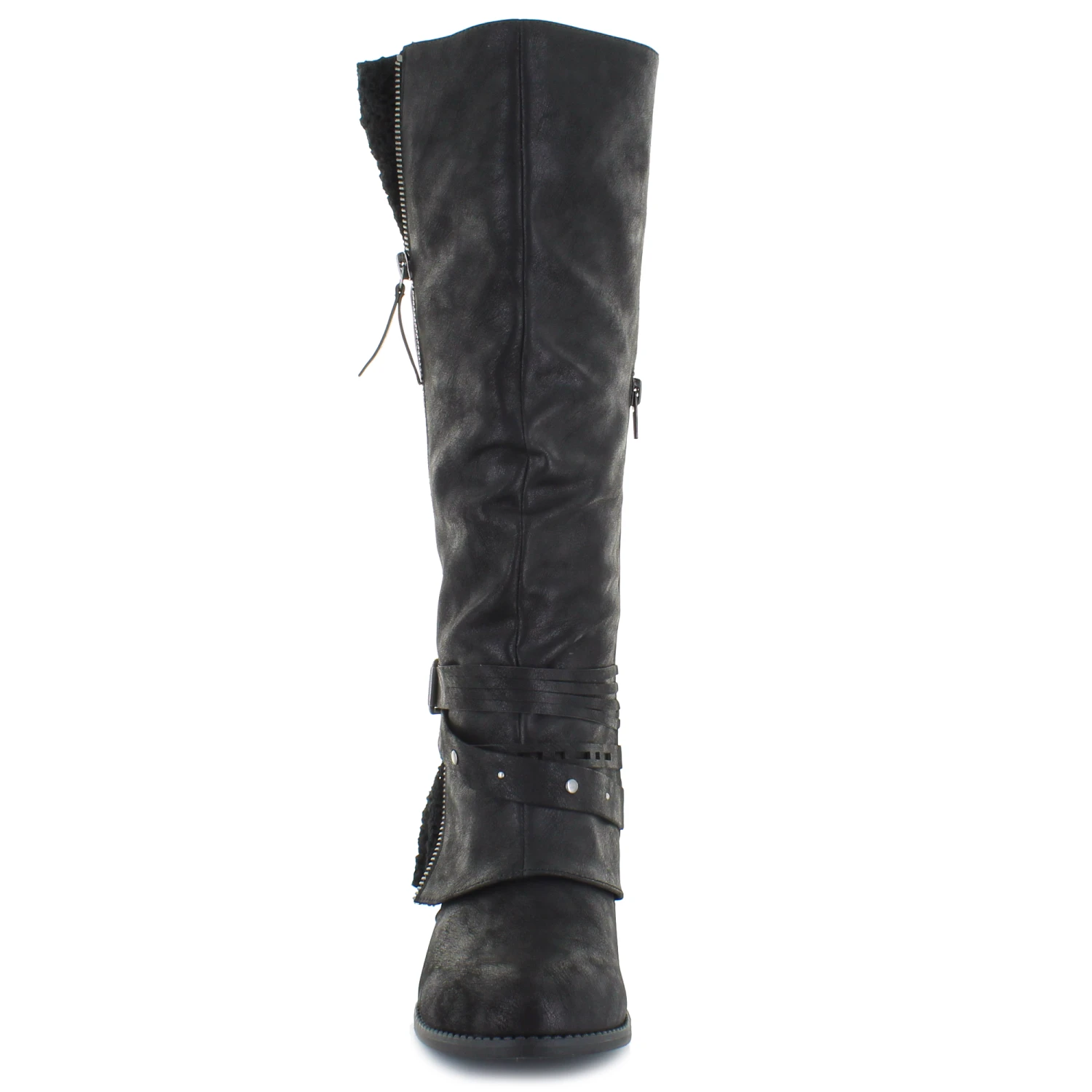 Sleek new fall fashion boot by Shimmer by EDL. The Terrene features strap and buckle details with a zipper accent. The inside zipper closure will provide an easy on and off.