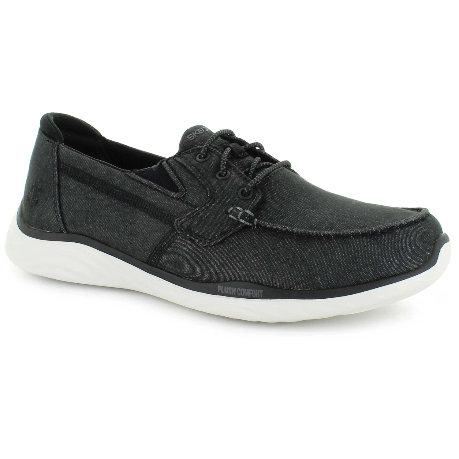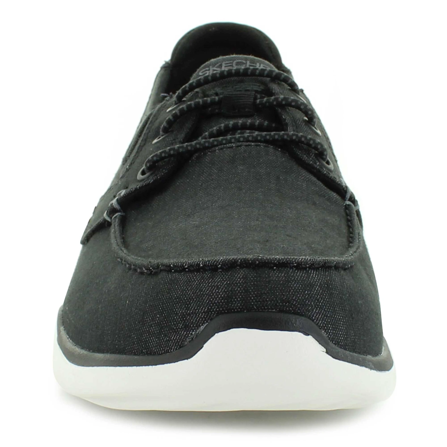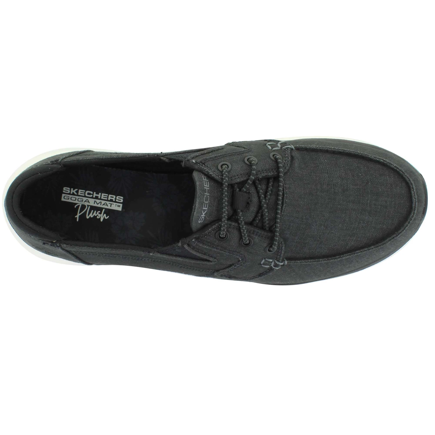 Classic nautical style and comfort combine wearing Skechers On-the-GO Ideal – Coastal. This boat style features a Stretch Fit canvas upper with stretch gore laces, a Goga Mat Plush insole and a lightweight ULTRA GO cushioned midsole.