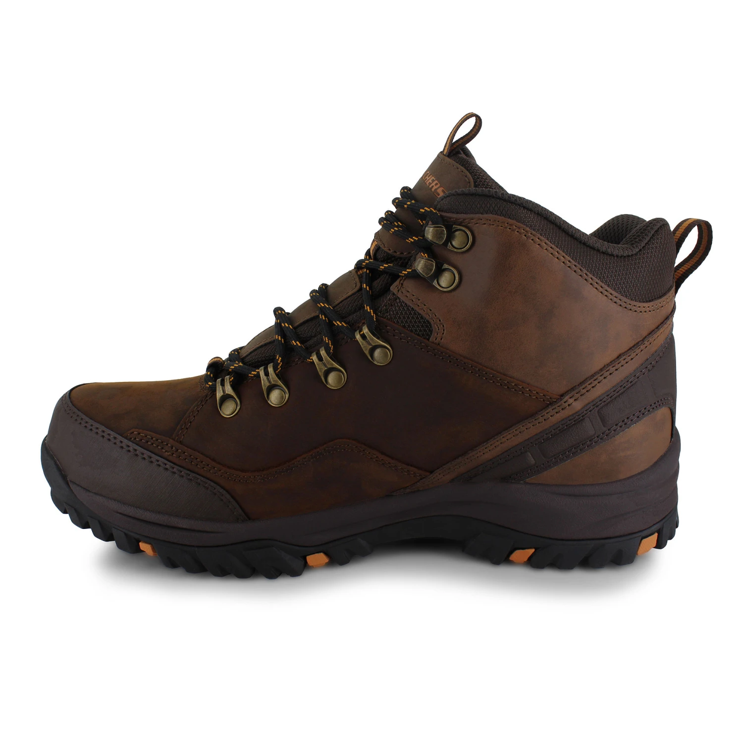 Conquer any trail with the Skechers Relment – Traven. Engineered with a seam-sealed waterproof design, durable leather, and synthetic combination upper, and Skechers’ Relaxed Fit for a roomy feel, this hiking boot is ready to tackle any kind of trail. The ankle height lace-up front closure secures your foot in place, a padded and gusseted tongue and collar offer extra support while also keeping water out. The Air Cooled Memory Foam insole cushions your foot with every step, while the lugged rubber high-traction outsole provides superior durability and traction.