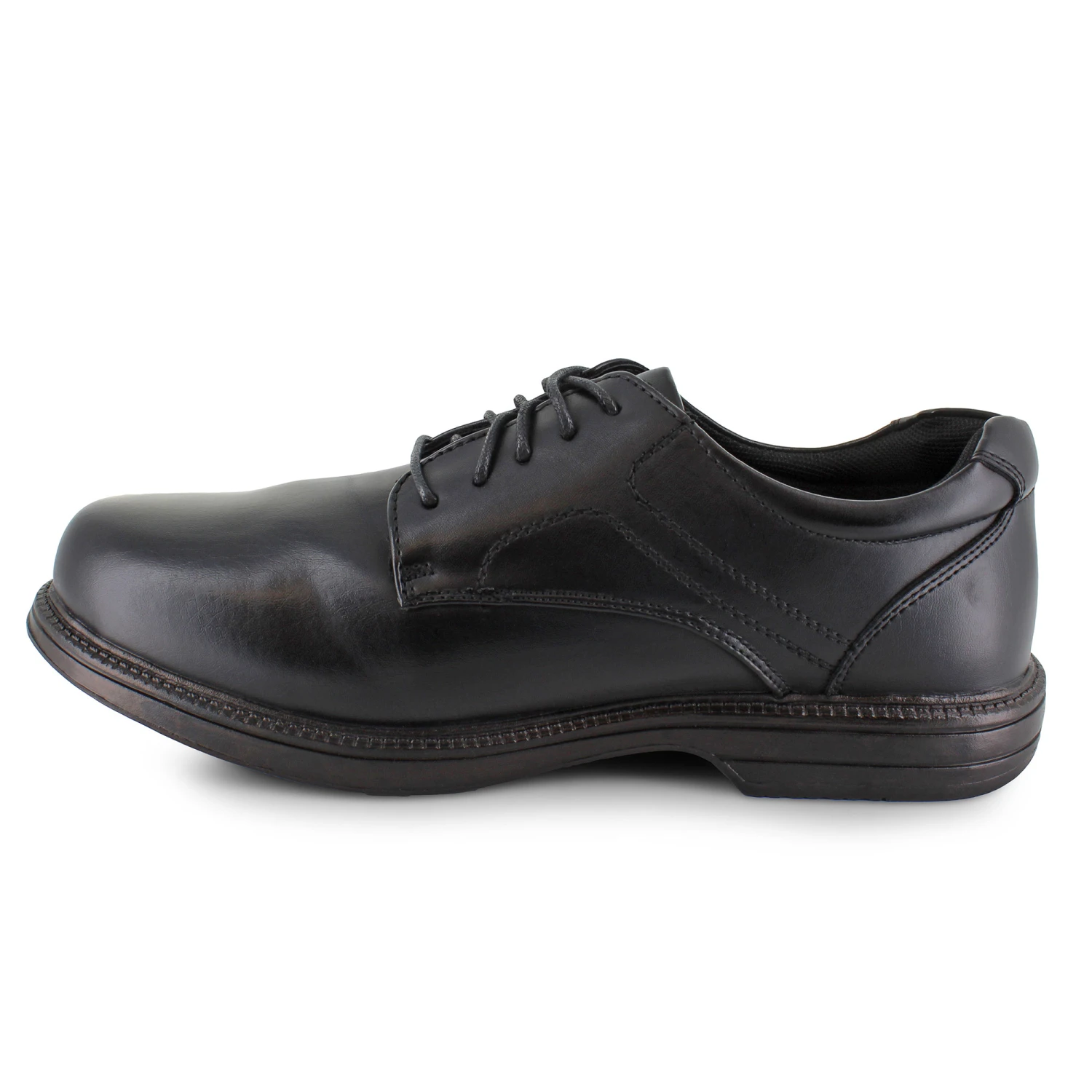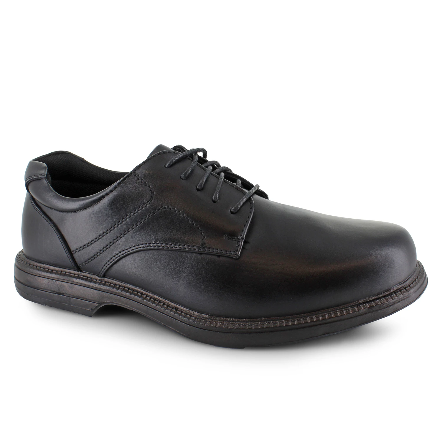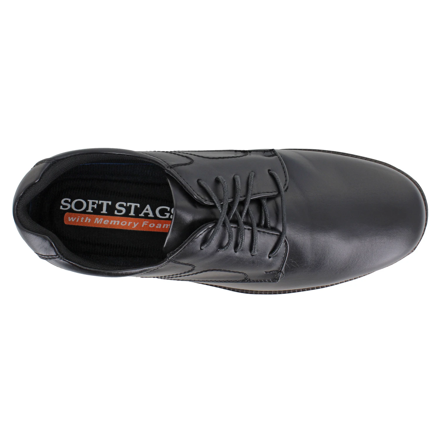 Dress to impress with the Soft Stags Ryan. This plain-toe oxford is crafted with a synthetic leather upper for a handsome shoe that’s sure to impress. The lace-up front closure keeps you secure in place while a memory foam cushioned insole provides lasting comfort and support throughout the day. The lightweight rubber outsole ensures traction and stability with a slip-resistant design.