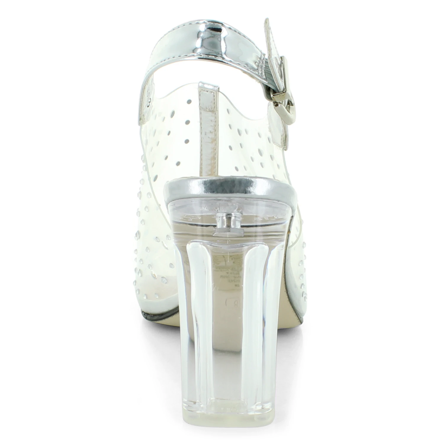 Stunning dress shoe by Valenti Franco. This stylish dress shoe features a clear upper with rhinestone details for sparkle. The clear heel will add a touch of class to your step.