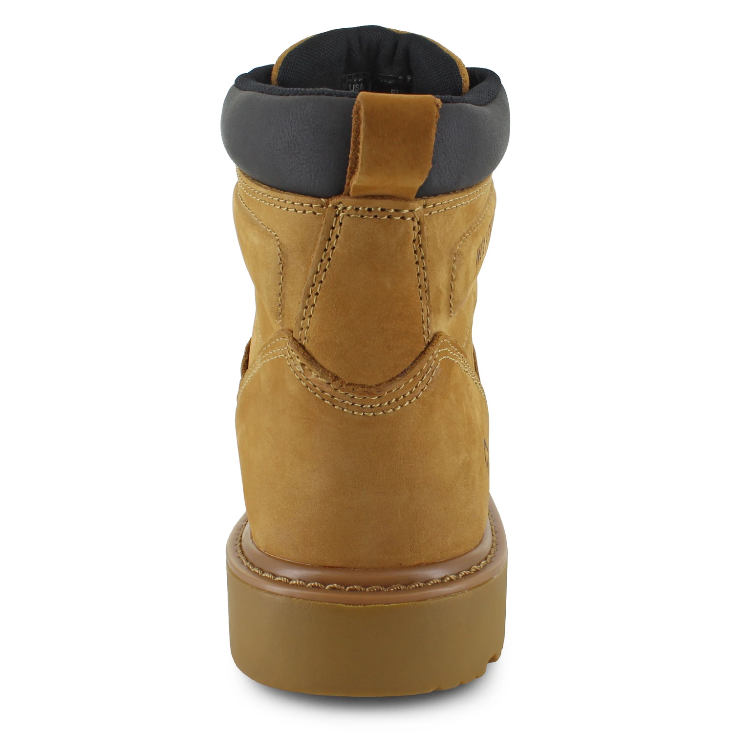 Work hard in both comfort and safety with the Wolverine Floorhand 6″. A full-grain leather upper creates a sturdy waterproof construction for this 6″ steel-toe boot. The lace-up front closure ensures a snug and secure fit, with lace reinforced with metal eyelets, while a padded tongue and collar offer additional support through the ankle. The moisture-wicking mesh lining and cushioned insole mold to your feet and keep them cool with optimal comfort and breathability throughout the workday.